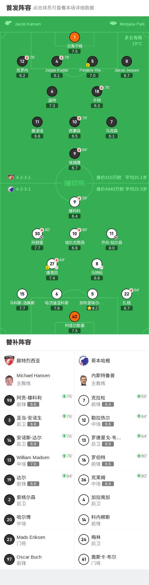 第69分鐘,哥本哈根球員馬特松助攻喬丹-拉爾森打入一球。