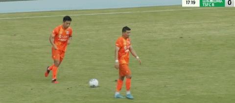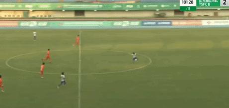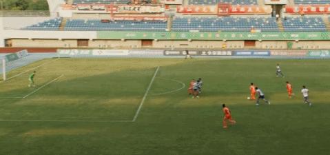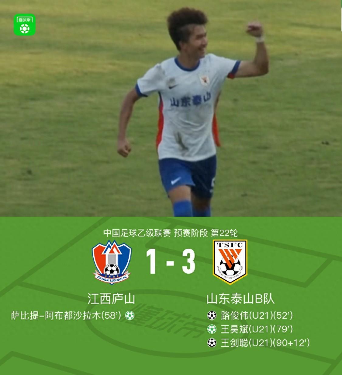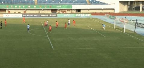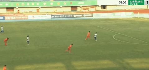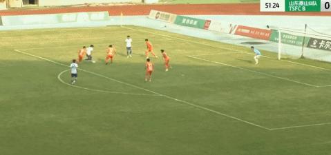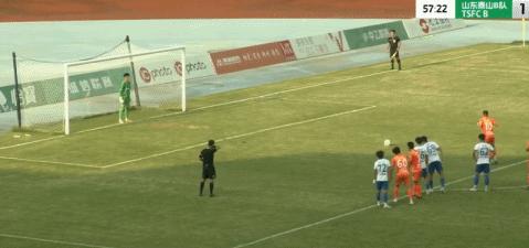 第52分鐘,路俊偉禁區前轟出一記世界波,山東泰山B隊1-0江西廬山