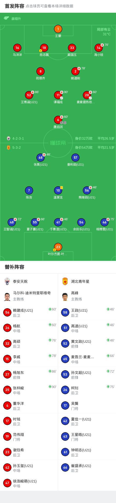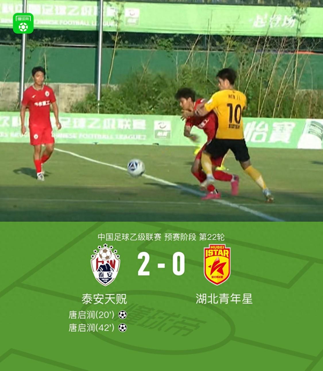 泰安天貺2-0湖北青年星,唐啓潤雙響,麥麥提艾力助攻