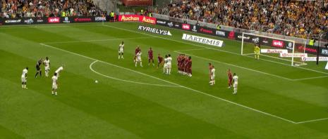 第14分鐘,羅馬開出任意球,曼奇尼破門,羅馬1-0