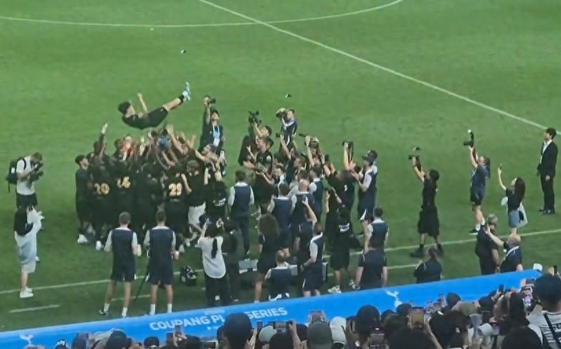 告別隊長,熱刺球員賽後在球場上將孫興慜高高拋起