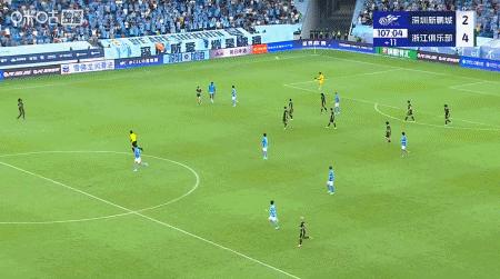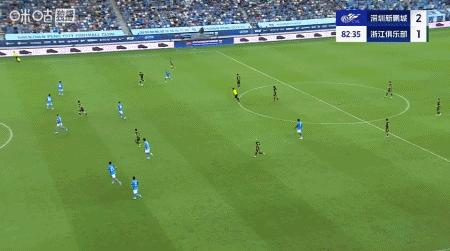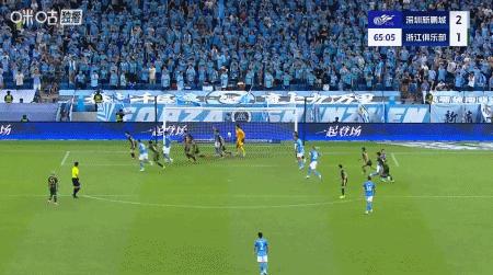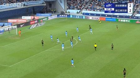 第90+8分鐘,奧烏蘇內切射門折射,卡列洛後點破門,浙江3-2反超新鵬城