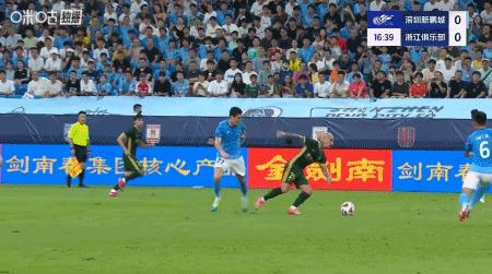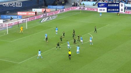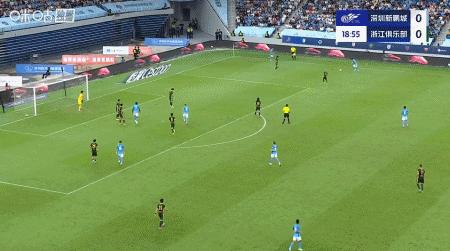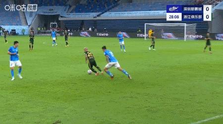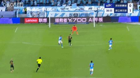 第39分鐘,米特里策外腳背助攻,弗蘭克單刀破門,浙江1-0領先新鵬城
