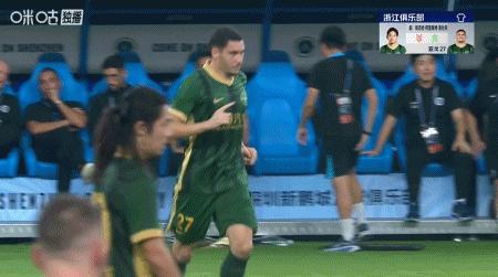 第76分鐘,浙江換人,亞戈-卡列洛替補登場