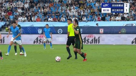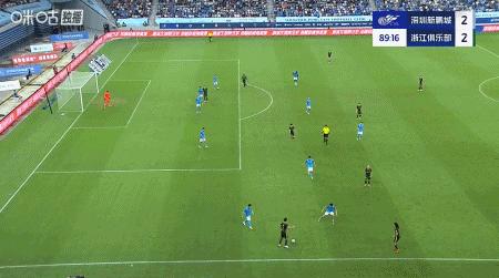 第89分鐘,王鈺棟傳中,亞戈-卡列洛頭球破門扳平比分,浙江2-2