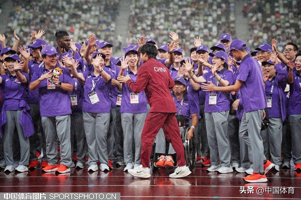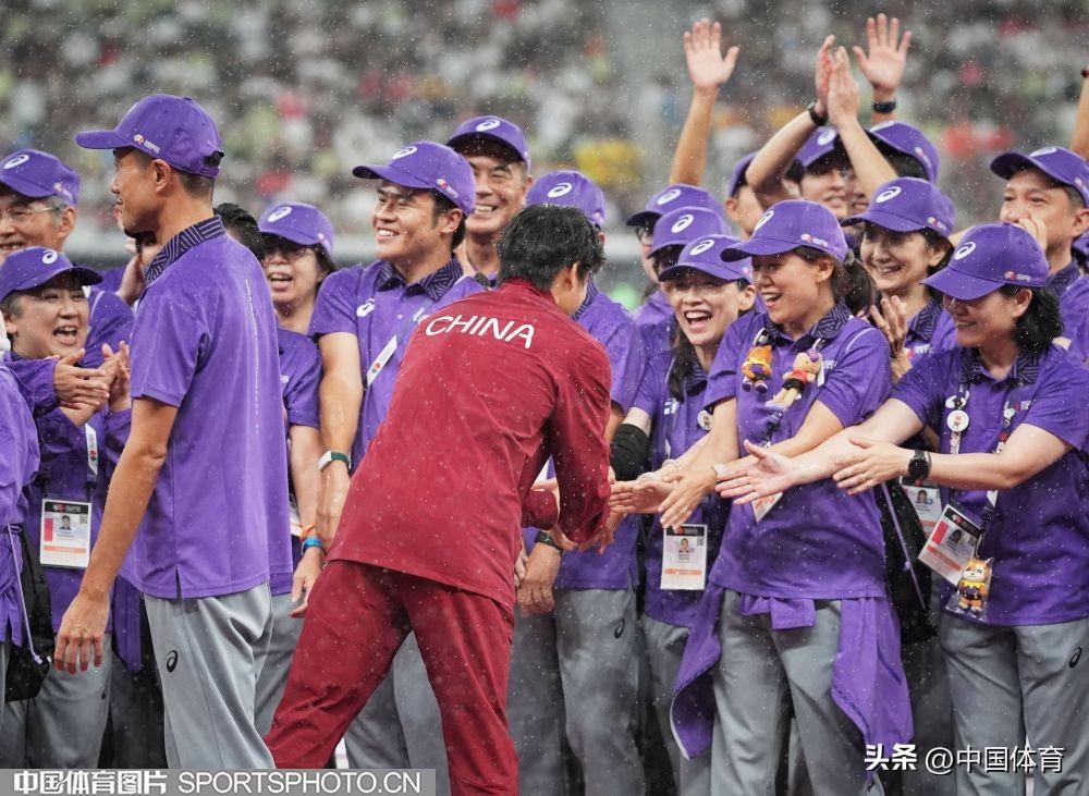 中國運動員與工作人員握手
