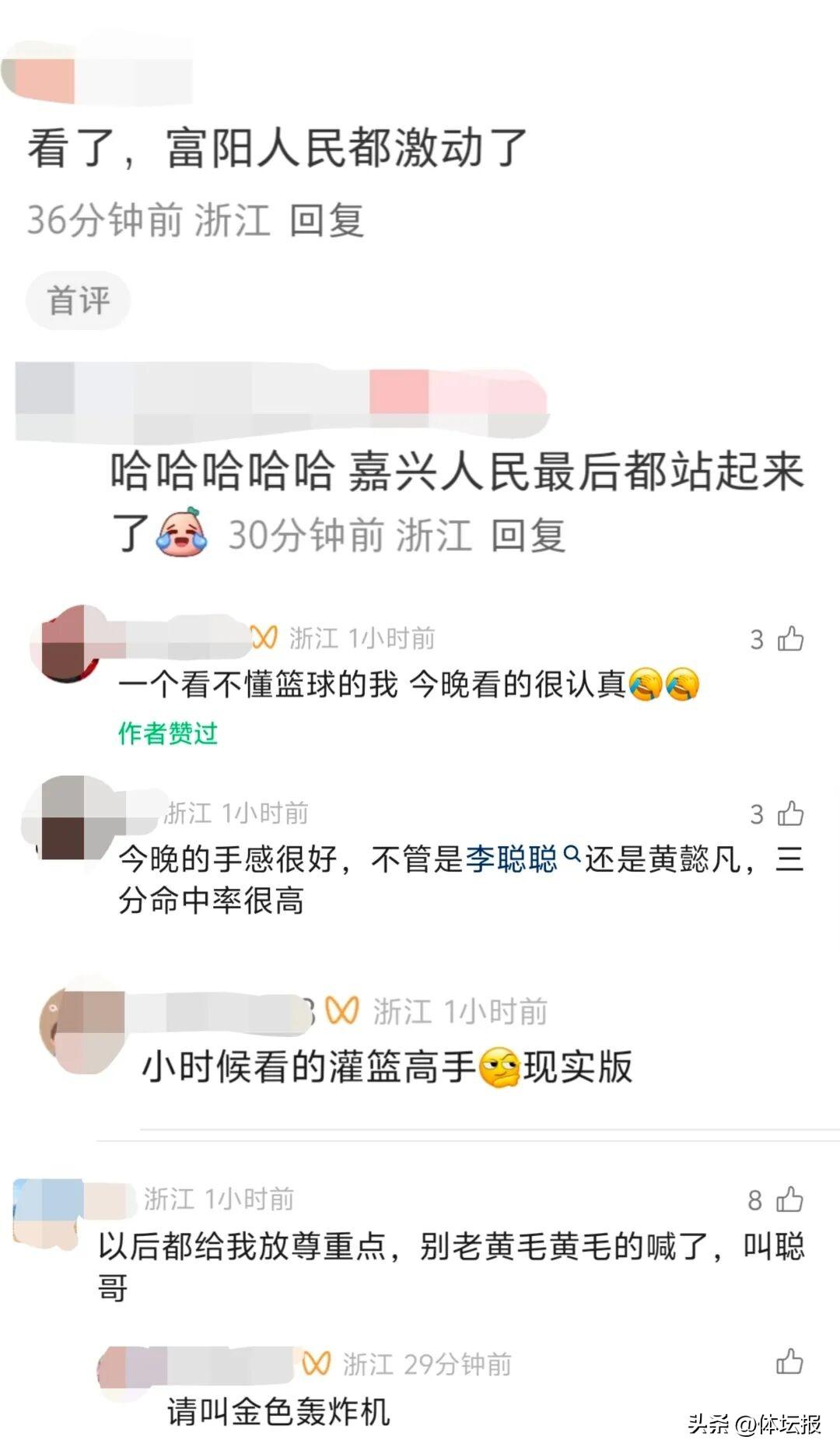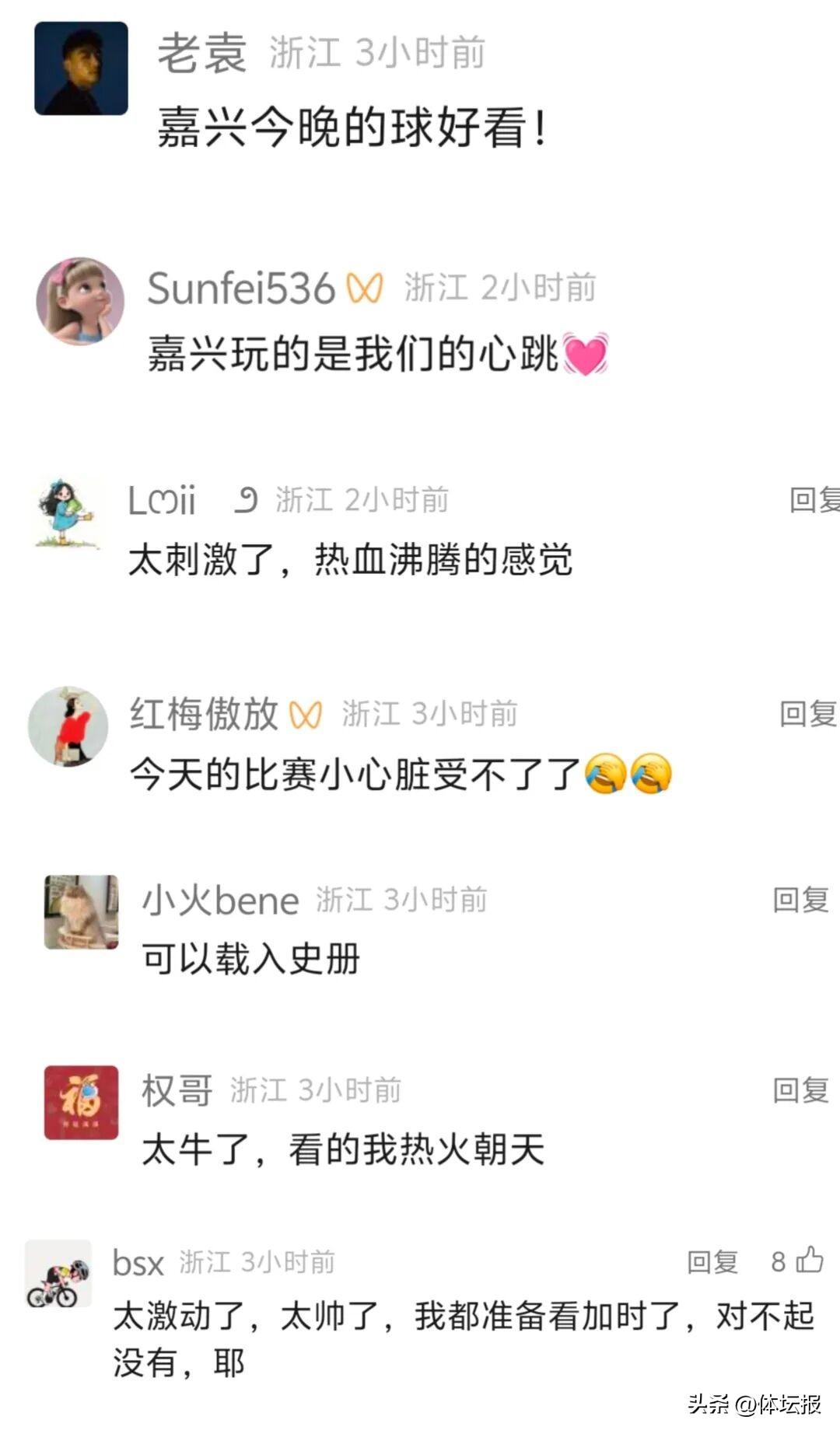 不只嘉興球迷熱血沸騰,甚至其他城市的觀衆也跟着激動了!熱情留言爲嘉興隊叫好。評論區還有人稱本場比賽爲“灌籃高手現實版”,這評價可着實不低。