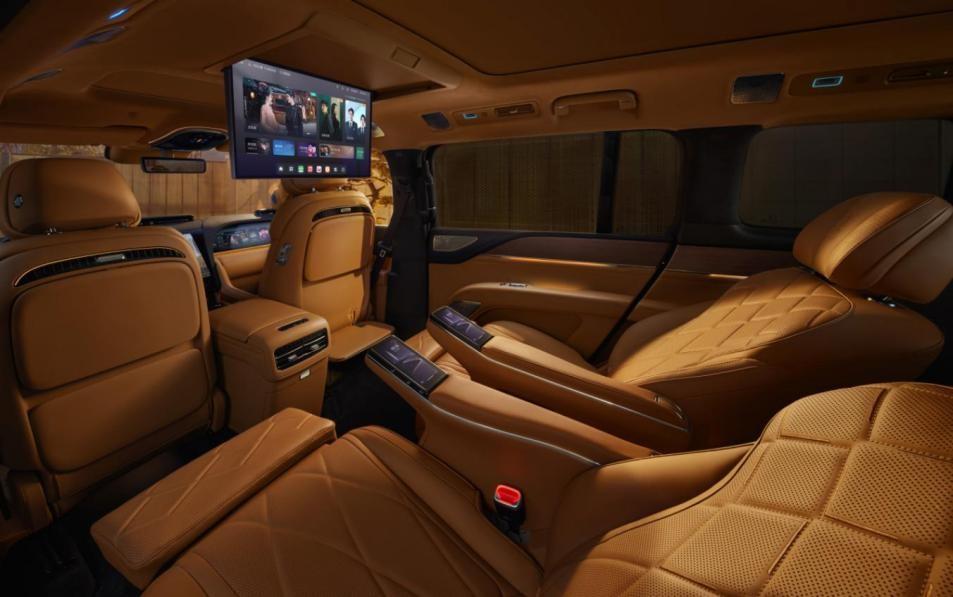 仰望U8L擁有鼎級空間表現,採用2+2+2靈活佈局。二排雙零重力座椅支持150°大躺角,配備腳託與18點按摩系統,消除疲憊,輕鬆上路。二排創新推出三種專屬模式:雲臥觀影模式打造移動私人影院,一鍵舒躺模式提供安心休憩空間,全平躺椅模式變身雙人沙發牀。