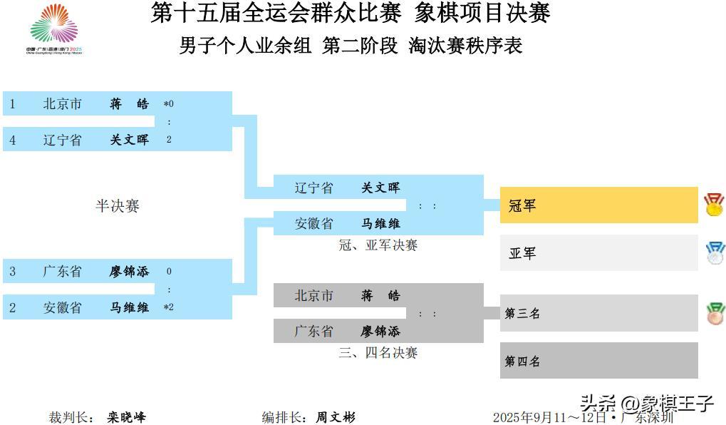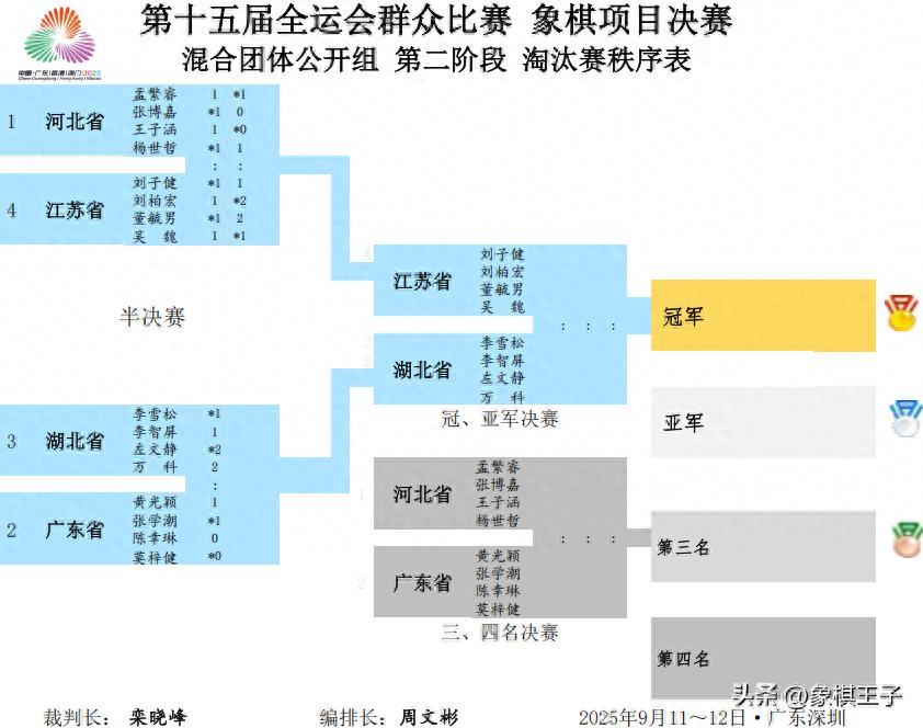 第十五屆全運會象棋的強鬥,進入到最爲緊張的階段,各組爭奪桂冠的名單,全線產生。
