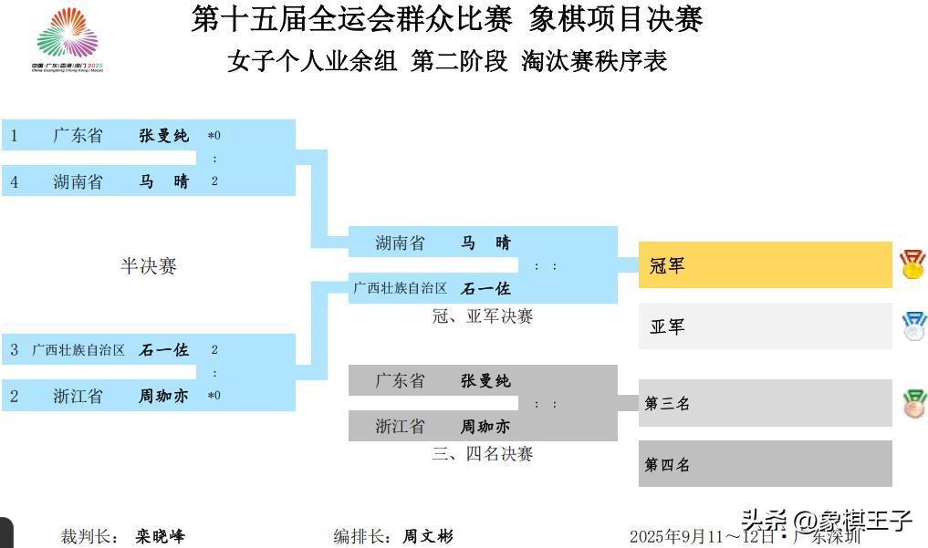 另外的一場半決賽爭奪,由湖南邵陽隆回09年的天才少女馬晴,執後手對陣預賽第一的廣東隊張曼純。