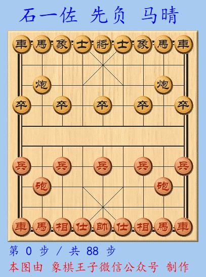業餘女子冠軍決賽,石一佐執紅棋先行,選擇起馬局,馬晴應以挺3卒,佈局紅方拆開左邊炮,黑方出右馬。