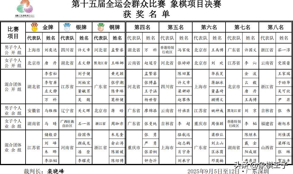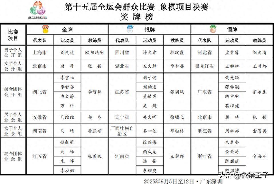 2025年全運會象棋的大戰,公開組混合團體,業餘組男子個人,業餘組女子個人,三項金牌全線產生,強勢收官。