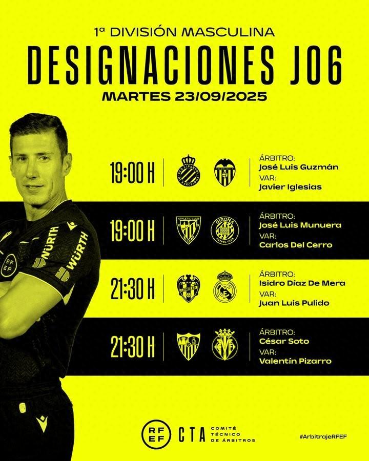 從本賽季開始,西班牙足協在賽前一天公佈西甲比賽裁判安排。