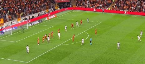 第33分鐘,吉列爾梅任意球直接射門,被加拉塔薩雷球員擋出