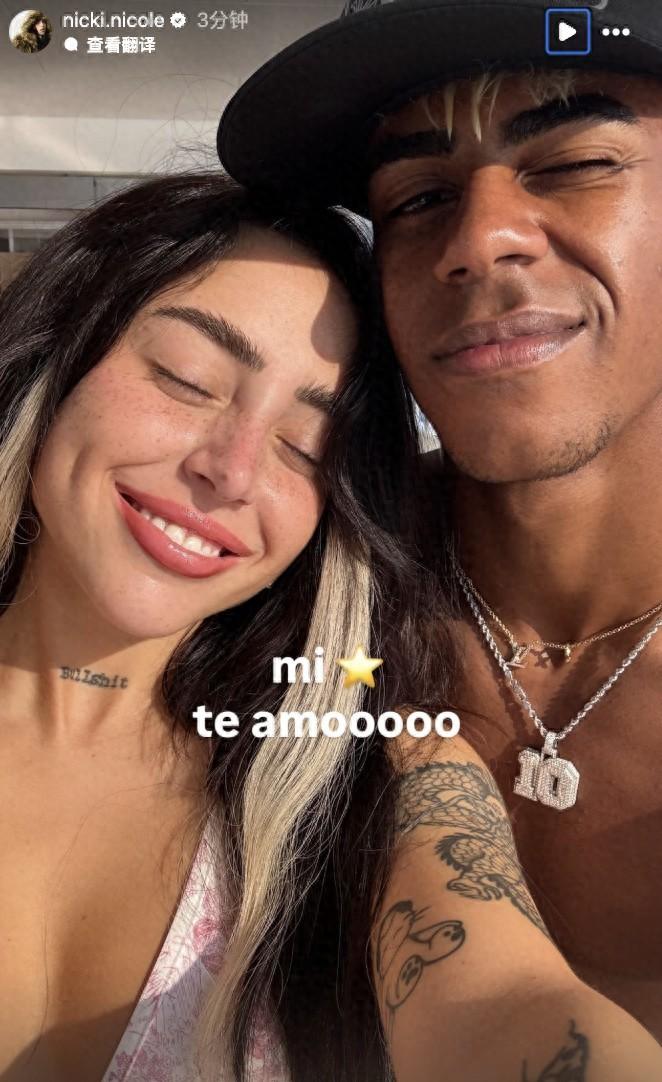 隨後,亞馬爾的女友、阿根廷女歌手Nicki Nicole在社交媒體曬出她和亞馬爾的自拍合照,並配文:“我的⭐️