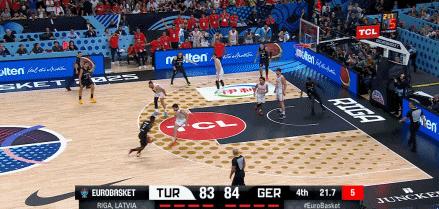 距離2025男籃歐錦賽決賽結束還有20秒,德國隊84-83僅領先土耳其1分。施羅德運球啓動,高速變向後晃開了半個身位,在罰球線附近投中了制勝中投。終場哨響,德國時隔32年再度捧起了男籃歐錦賽的冠軍獎盃。