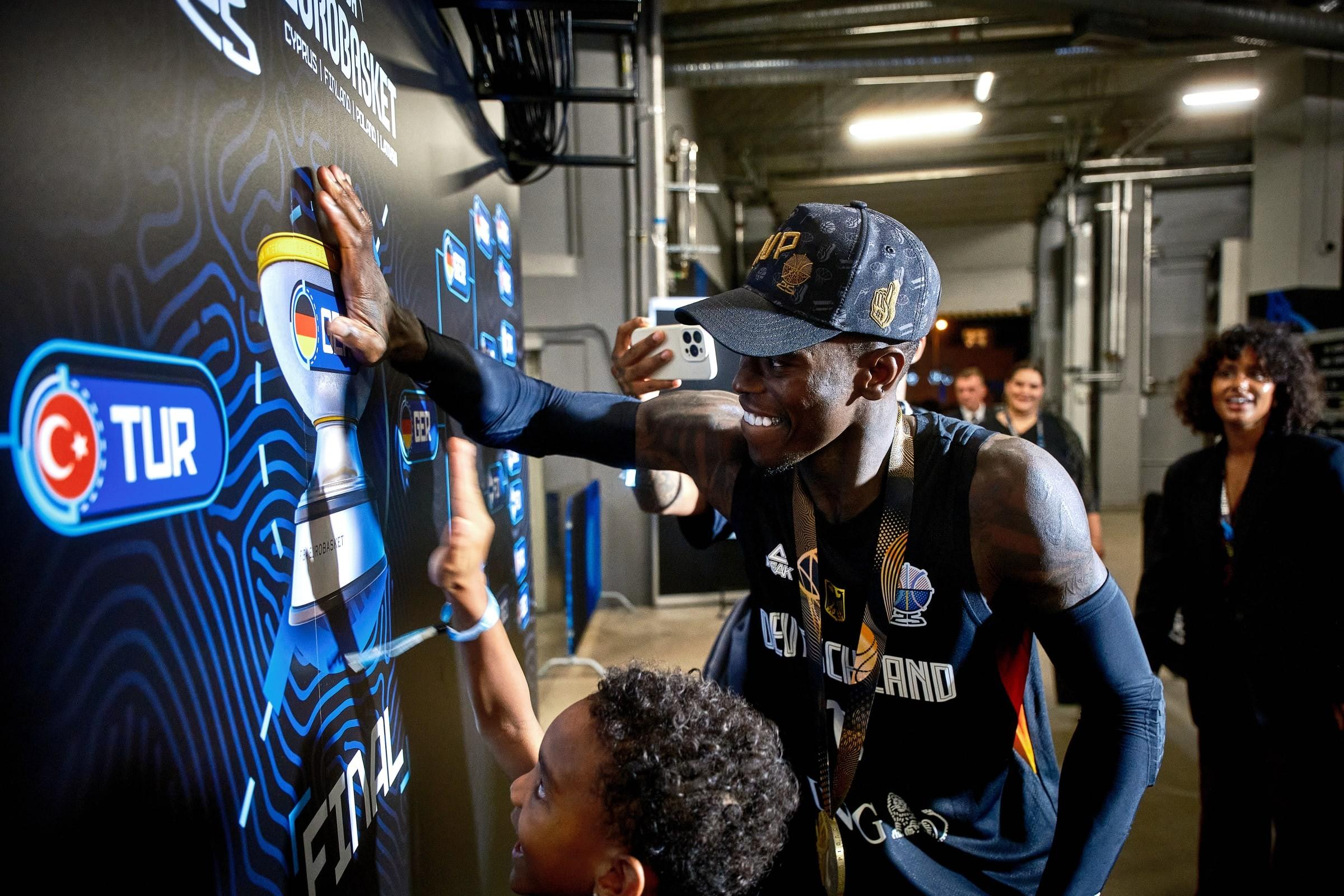這一夜,施羅德不僅帶領德國隊以9戰全勝的完美戰績奪冠,更以場均20.3分3.4籃板7.2助攻的優秀表現,當選本屆歐錦賽MVP。加上2023年男籃世界盃的MVP獎盃,他成爲籃球史上第七位集齊世界盃與歐錦賽雙料MVP的球員,躋身FIBA傳奇的行列。