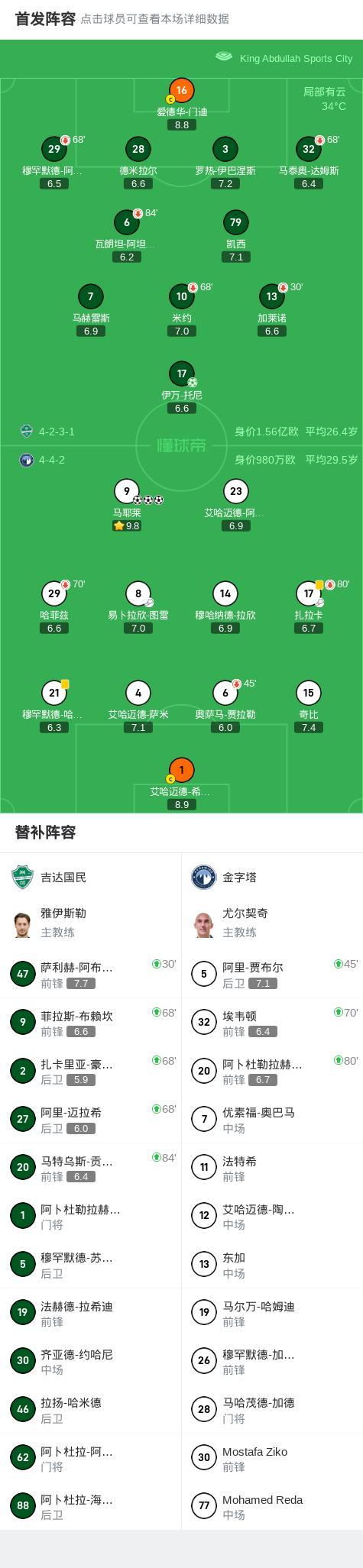 第71分鐘,金字塔球員扎拉卡助攻馬耶萊打入一球。
