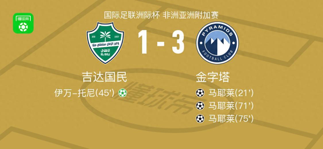 北京時間9月24日,國際足聯洲際盃非洲亞洲附加賽展開較量,吉達國民與金字塔狹路相逢。比賽伊始,金字塔率先打破僵局,易卜拉欣-圖雷送出助攻,馬耶萊推射得手。上半場臨近尾聲,吉達國民通過點球機會扳回一城,伊萬-託尼主罰命中,將比分扳平。進入下半場,金字塔持續施壓,扎拉卡送出精準傳球,助馬耶萊再度破門。隨後不久,馬耶萊延續火熱狀態,單刀突入完成個人本場第三粒進球。最終全場比賽結束,吉達國民1-3不敵金字塔。
