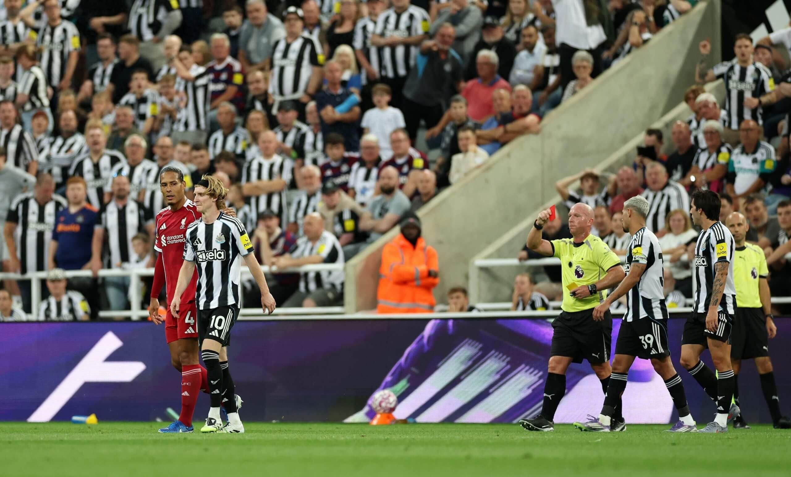 除了伯恩利的漢尼拔-梅布里事件,最近最顯著的例子之一是聖詹姆斯公園的球迷們在安東尼-戈登被紅牌罰下時的反應——他顯然踢到了範戴克的腳跟。又是一個相當直截了當的判罰,所以如果從字面上理解,這個口號往往顯得荒謬可笑。