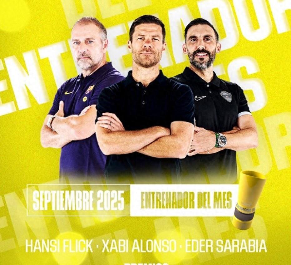 西甲官方公佈了9月最佳主教練候選:阿隆索、弗裏克、埃德-薩拉維亞。