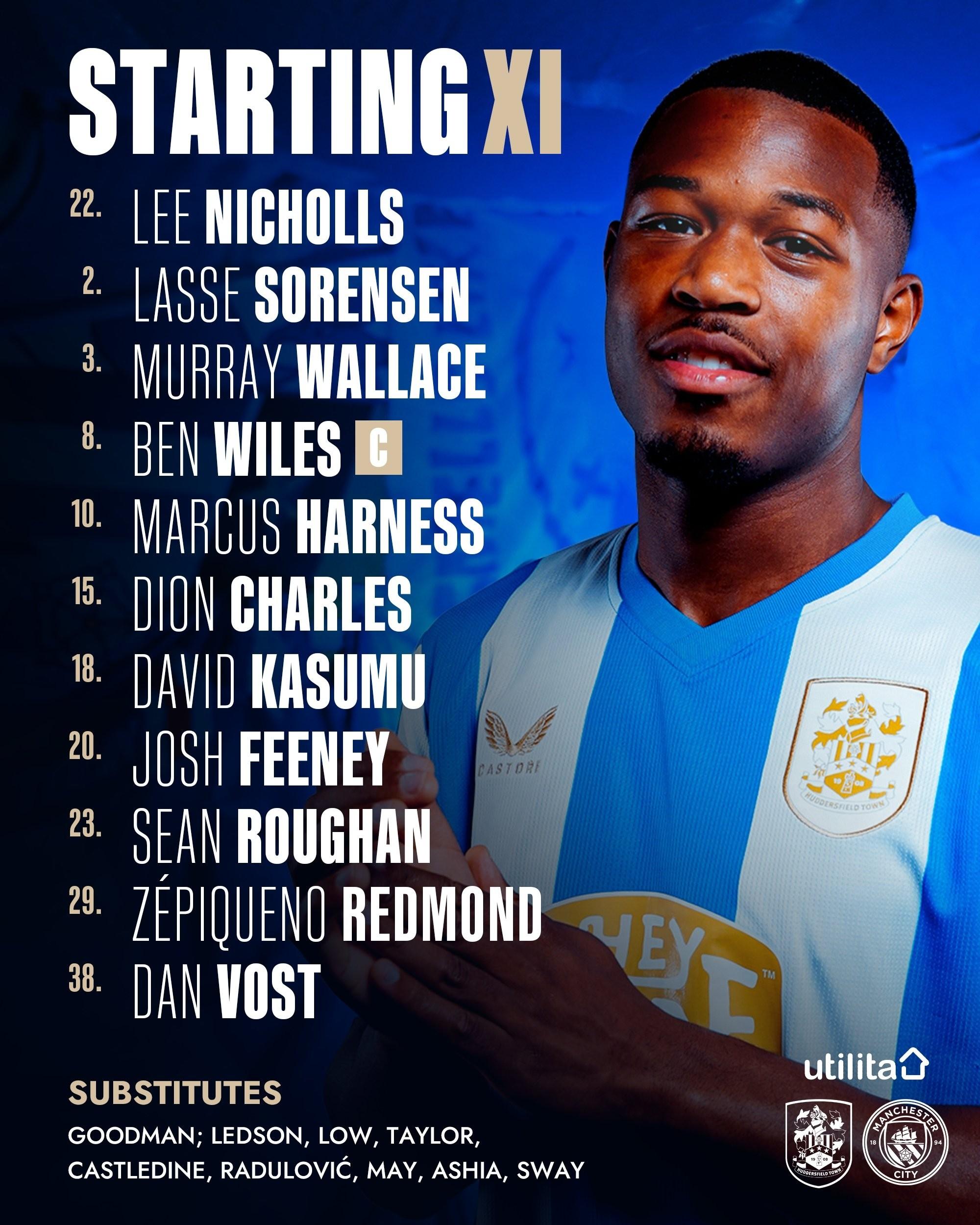 哈德斯菲爾德首發:22-李-尼科爾斯、3-華萊士、20-菲尼、23-魯漢、2-拉塞-瑟倫森、8-懷爾斯、10-邁爾斯-哈尼斯、38-沃斯特、18-卡蘇姆、15-查爾斯、29-澤皮克諾-雷德蒙