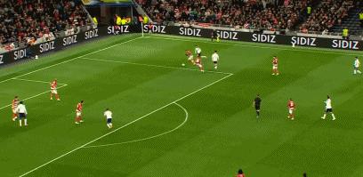 第26分鐘,特爾突入禁區抽射,皮球被擋出