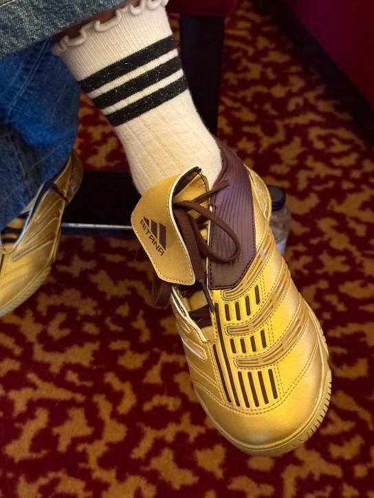 此外,阿迪達斯爲她贈送了禮物。邦馬蒂在利塞烏大劇院亮相時穿着一雙爲這一場合特別定製的阿迪達斯球鞋。