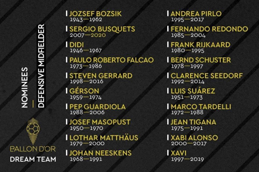 布斯克茨是20名後腰/中前衛裏唯一的現役球員,最終進入夢之隊一陣的是哈維與馬特烏斯,進入二陣的是皮爾洛與裏傑卡爾德,進入三陣的是迪迪和內斯肯斯。