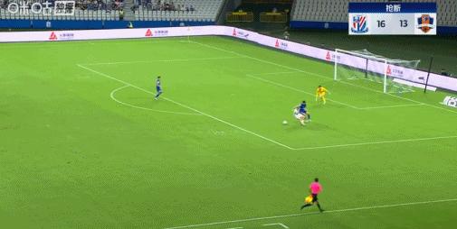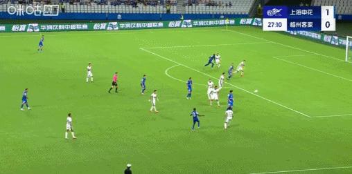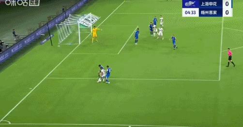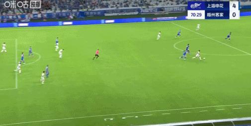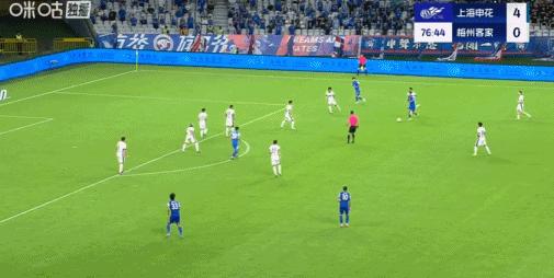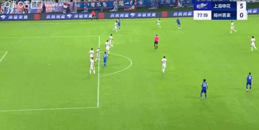 第76分鐘,于漢超挑傳,楊澤翔推射破門,申花5-0梅州