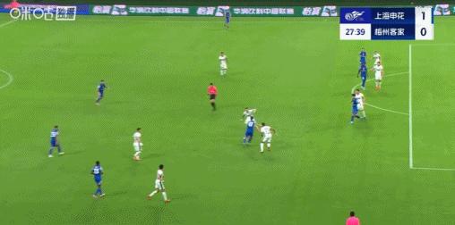 第28分鐘,馬納法傳球,吳曦插上後輕巧墊射破門,申花2-0梅州