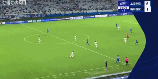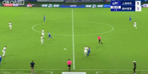 第90+4分鐘,吳曦長傳,于漢超無私助攻楊皓宇破門,申花6-1梅州