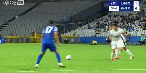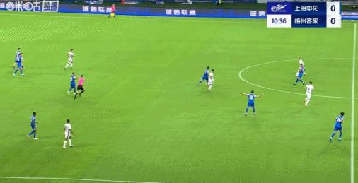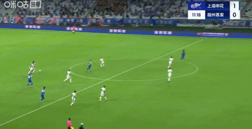 第11分鐘,阿蘇埃射門被擋後補射破門,申花1-0梅州