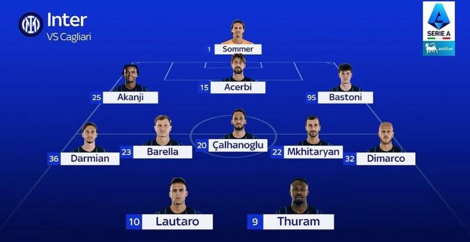 索默;阿坎吉、阿切爾比、巴斯托尼;達米安、巴雷拉、恰爾汗奧盧、姆希塔良、迪馬爾科;勞塔羅、馬庫斯-圖拉姆