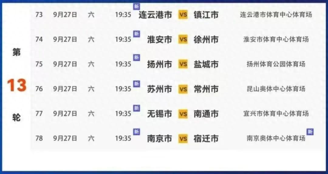 北京時間9月27日晚間,蘇超聯賽收官戰將在今晚進行,今晚,6場比賽將同時開球。
