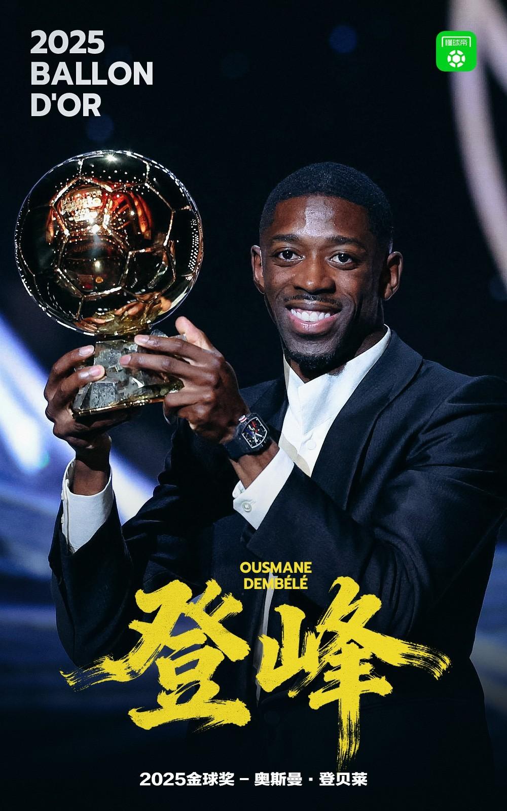 《法國足球》官方公佈了2025年金球獎各國家/地區記者投票詳情,結果顯示奧斯曼-登貝萊獲73張第一順位選票以極大的優勢最終獲獎。登貝萊的73張第一順位票裏,歐洲區30張,非洲區14張,亞洲及大洋洲地區12張,中北美區10張,南美區7張。