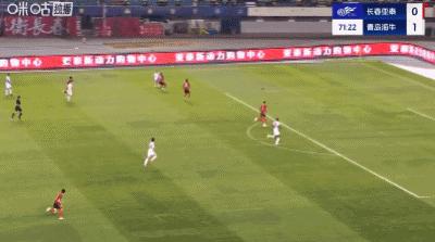 第72分鐘,肖鯤禁區突破踩單車低射破門,海牛2-0亞泰