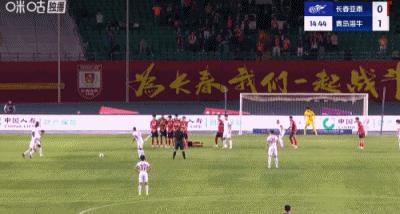 第90+1分鐘,譚龍補射破門,亞泰1-2海牛