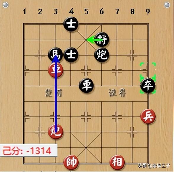 賴理兄長考下來,走了一步馬8進6,這步棋,紅如炮五平四,平炮吊住黑馬,黑棋就虧損超八百分,十分危急。