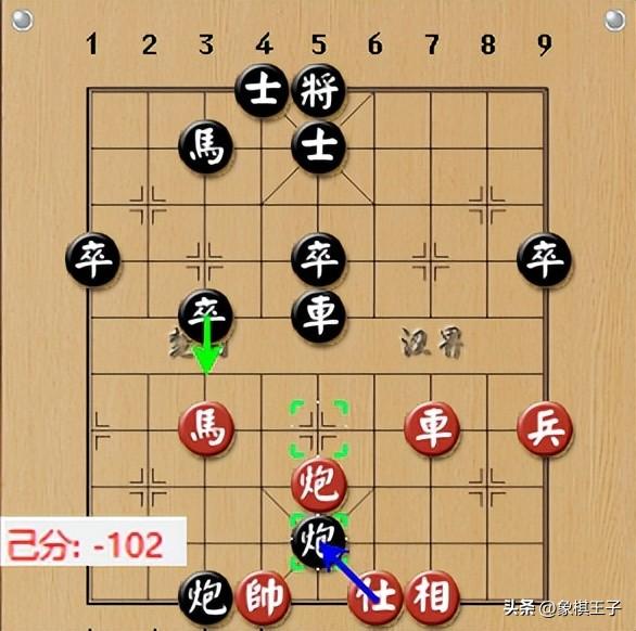 紅方此際進車喫回一馬下來,一個打將頓挫,回車喫炮,是下黑如提車砍馬,紅車喫炮,則局上差不多。