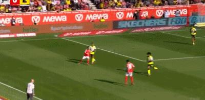 第15分鐘,美因茨任意球開出,禁區內一片亂戰,科貝爾將球擊出