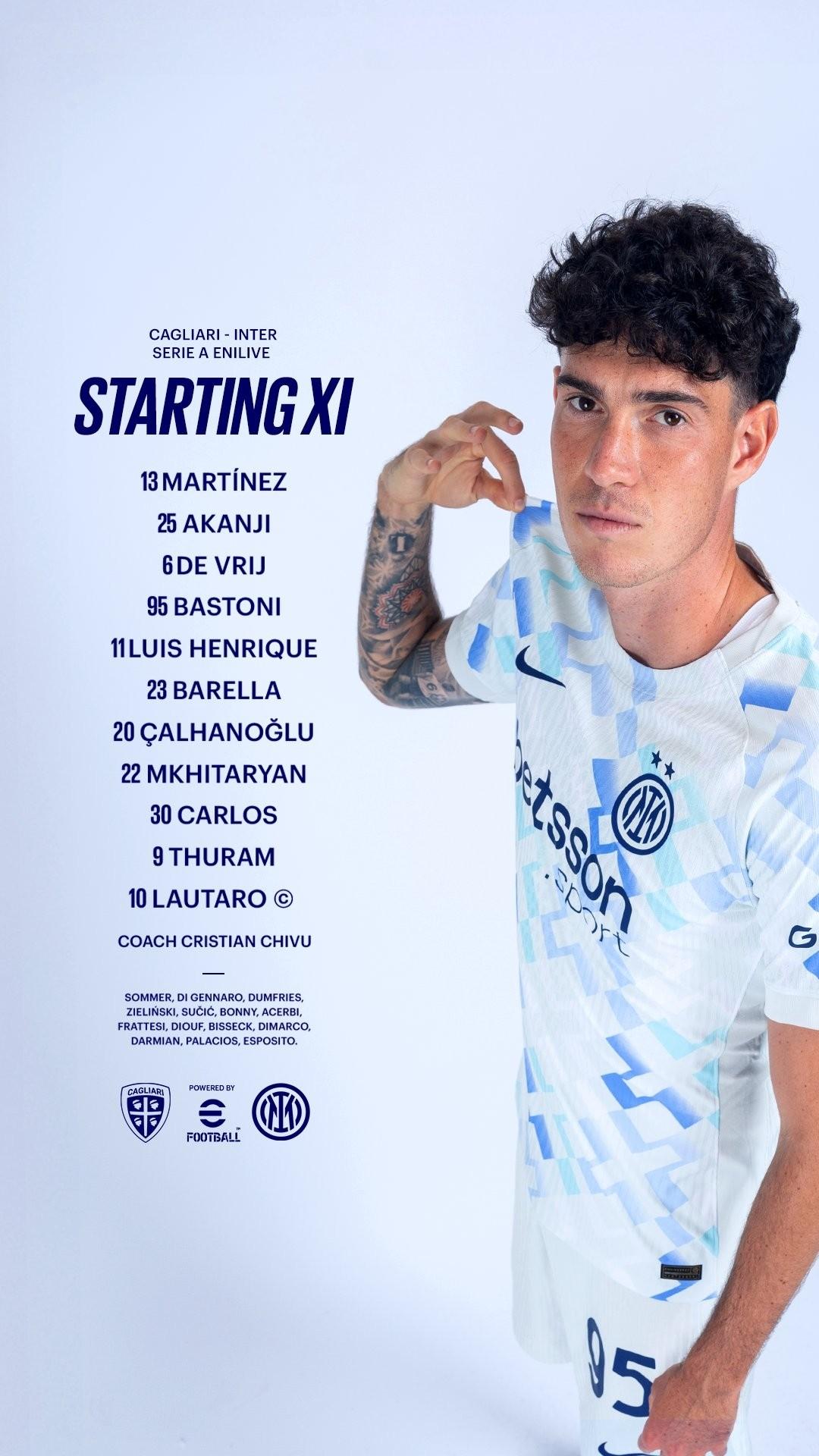 國米首發:13-何塞普-馬丁內斯、25-阿坎吉、6-德弗賴、95-巴斯托尼、11-路易斯-恩裏克、23-巴雷拉、20-恰爾汗奧盧、22-姆希塔良、30-卡洛斯-奧古斯托、9-圖拉姆、10-勞塔羅