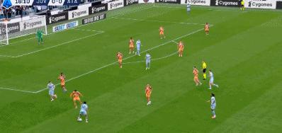 第45+1分鐘,阿季奇失誤,蘇萊曼納殺入禁區低射破門!尤文0-1亞特蘭大