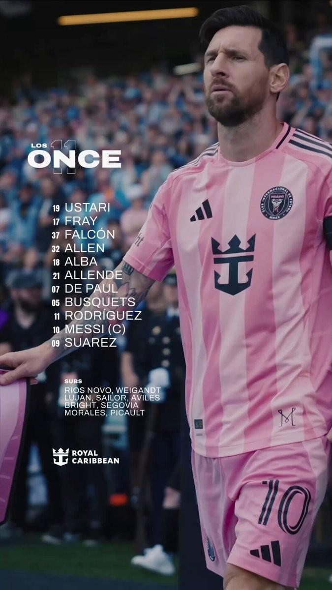 邁阿密國際首發:5-布斯克茨、7-德保羅、9-蘇亞雷斯、10-梅西、11-巴爾塔薩爾-羅德里格斯、17-伊恩-弗雷、18-阿爾巴、19-烏斯塔裏、21-阿連德、32-諾亞-艾倫、37-法爾孔