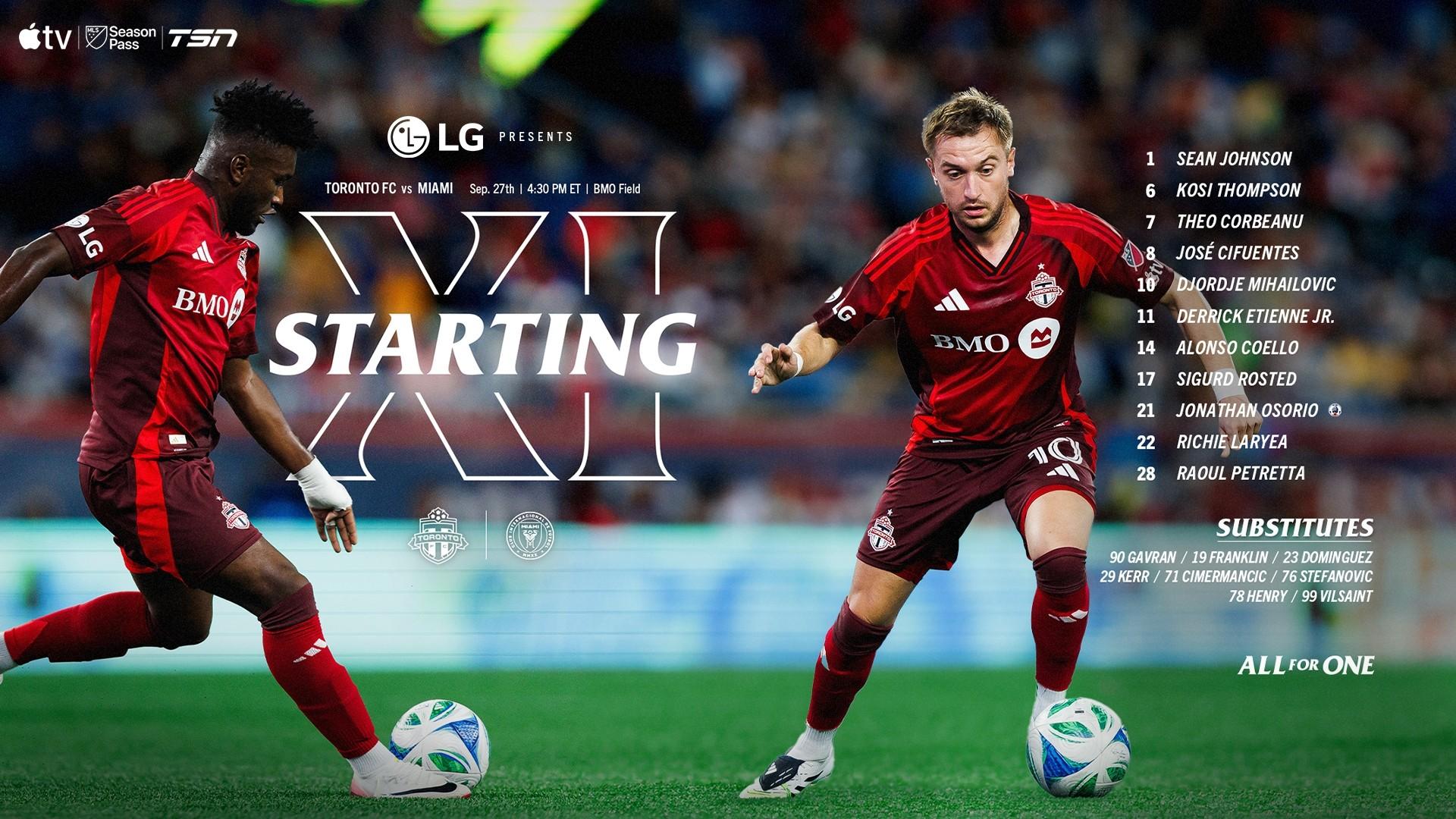 北京時間9月28日4點30分,美職聯常規賽多倫多對陣邁阿密國際,賽前公佈首發名單。