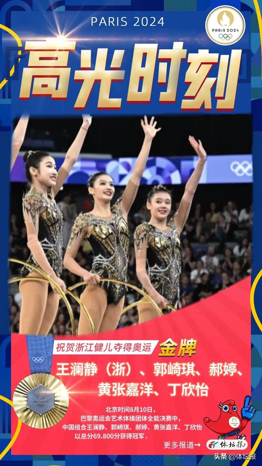 王瀾靜,女,浙江體育職業技術學院藝術體操運動員,國際健將。2014年開始從事藝術體操專業訓練至今,在十幾年的藝術體操道路上,始終保持着一顆爲國爭光、爲省添譽的初心,刻苦訓練、拼搏向上,全身心地投入到每堂訓練課中,在巴黎奧運會賽場上,憑藉着超強的定力和完美的發揮,獲得藝術體操集體全能冠軍,創造了藝術體操自建隊以來的最好成績。
