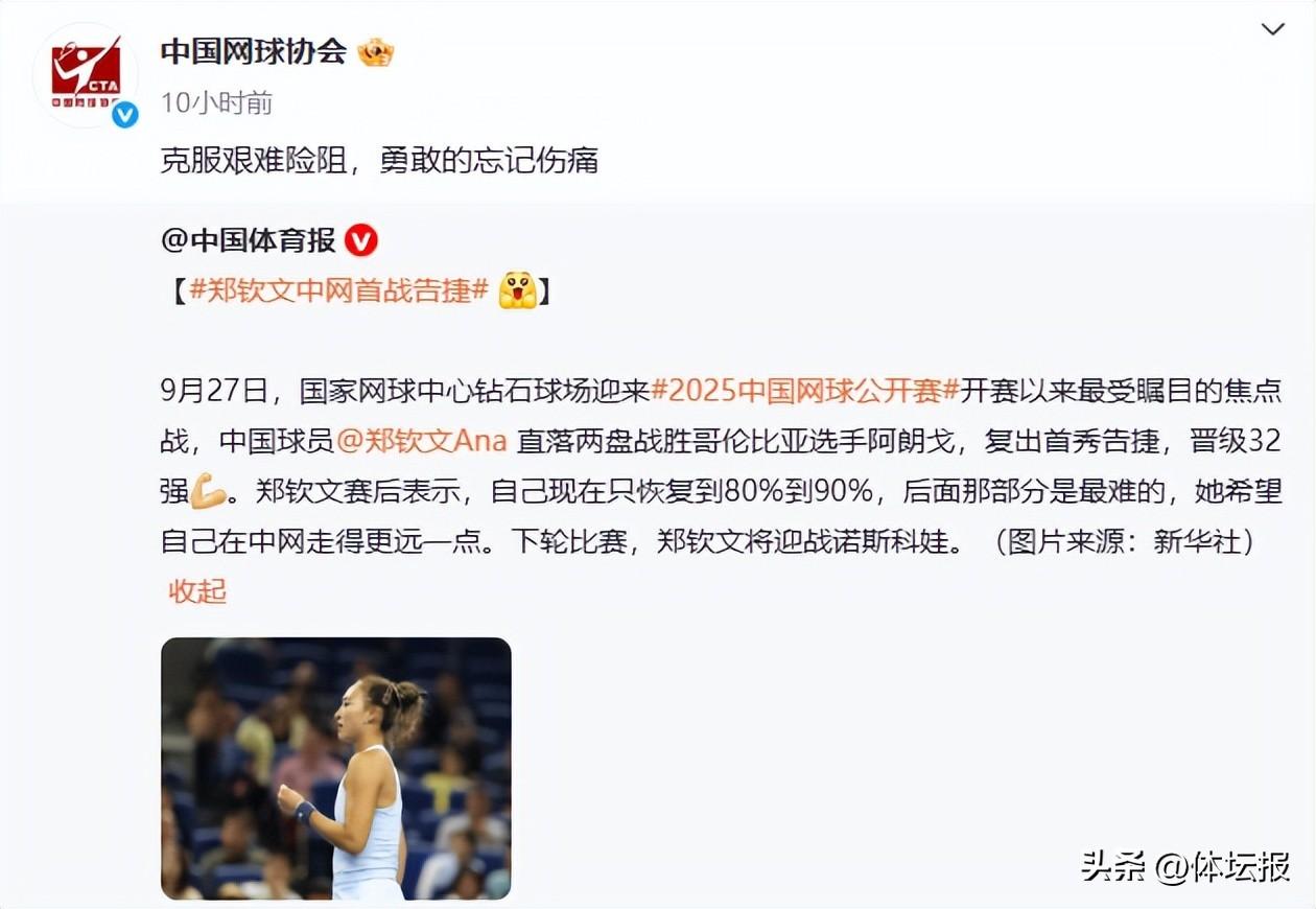 中網 | 暫別賽場88天,鄭欽文復出首戰贏了!