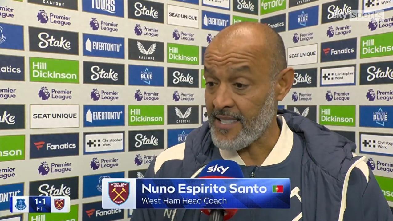 在執教首場比賽1-1與埃弗頓打平後,西漢姆聯主帥努諾接受了天空體育的採訪。