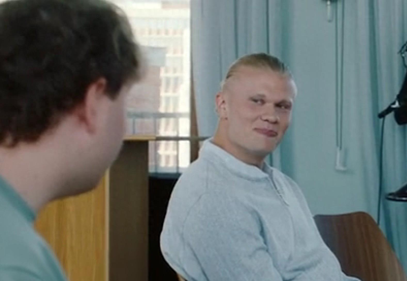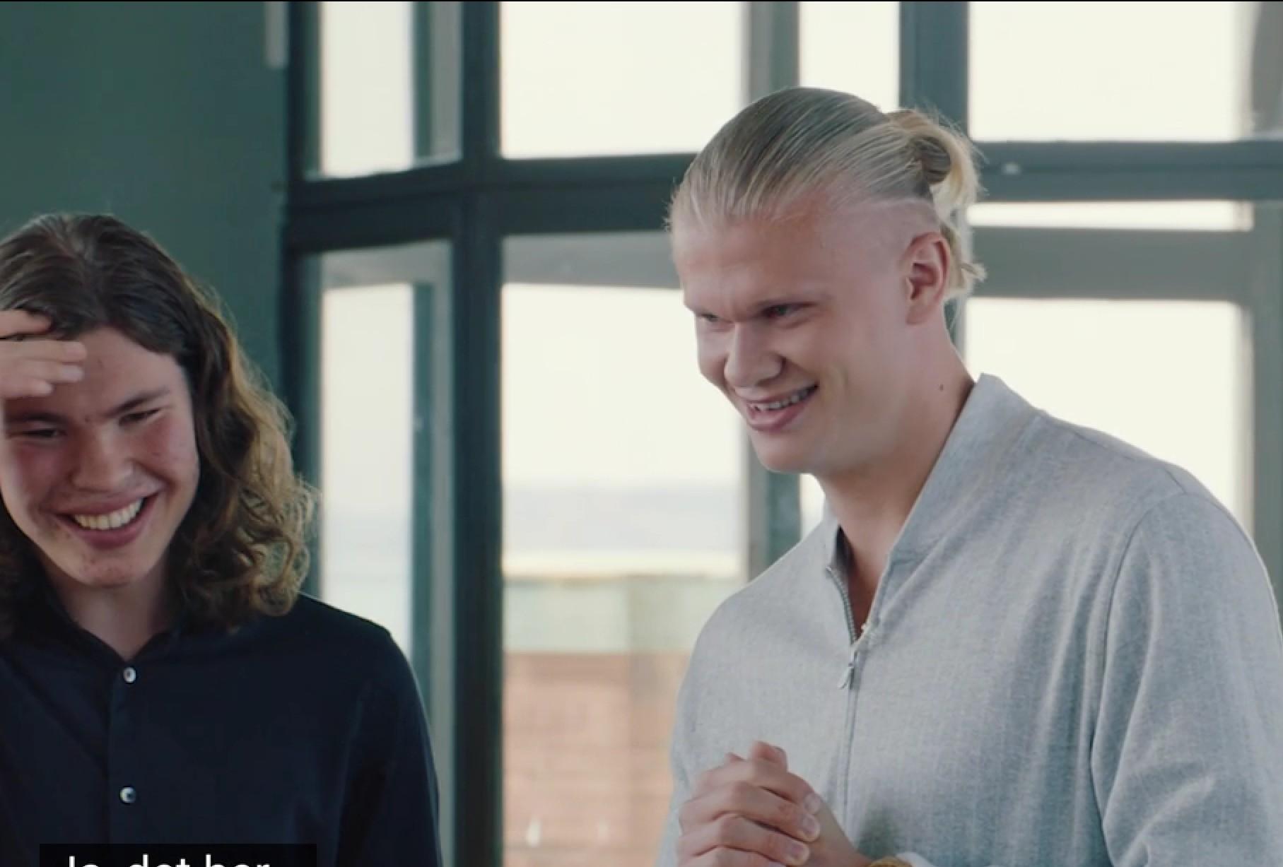 “她給我發了消息,不過她當時也在跟我效力的同一支球隊:布呂訥,所以是她主動找的我,而不是我追她。”哈蘭德咧嘴笑着說。