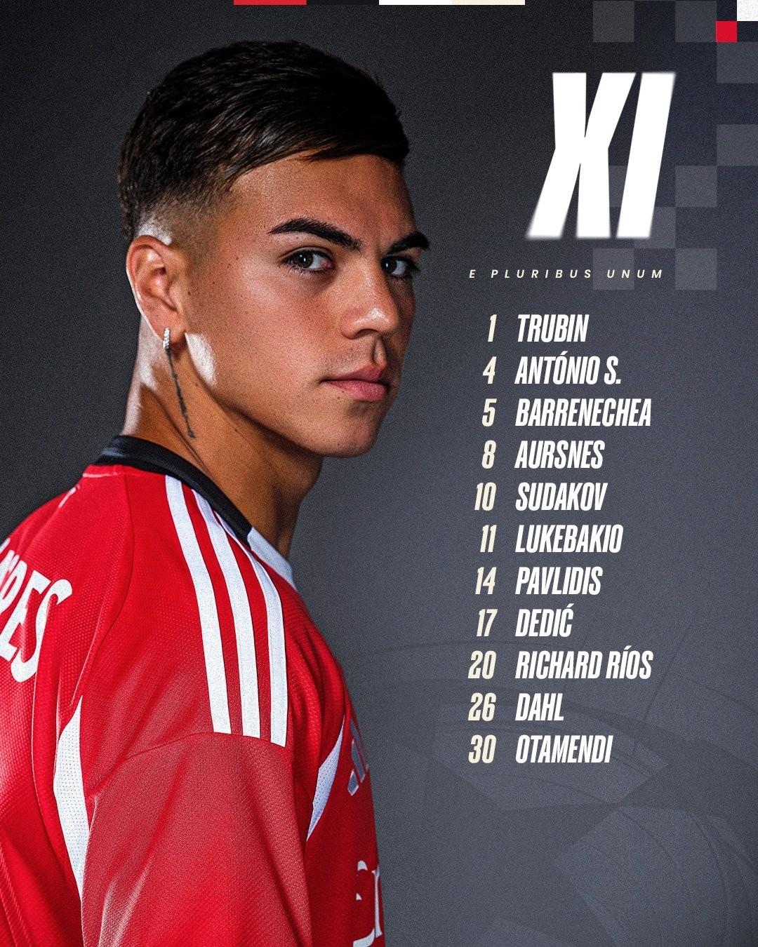 本菲卡首發:1-特魯賓、26-達爾、30-奧塔門迪、4-席爾瓦、17-德迪奇、8-奧爾斯內斯、5-巴雷內切亞、20-里奧斯、10-蘇達科夫、14-帕夫利季斯、11-盧克巴吉奧